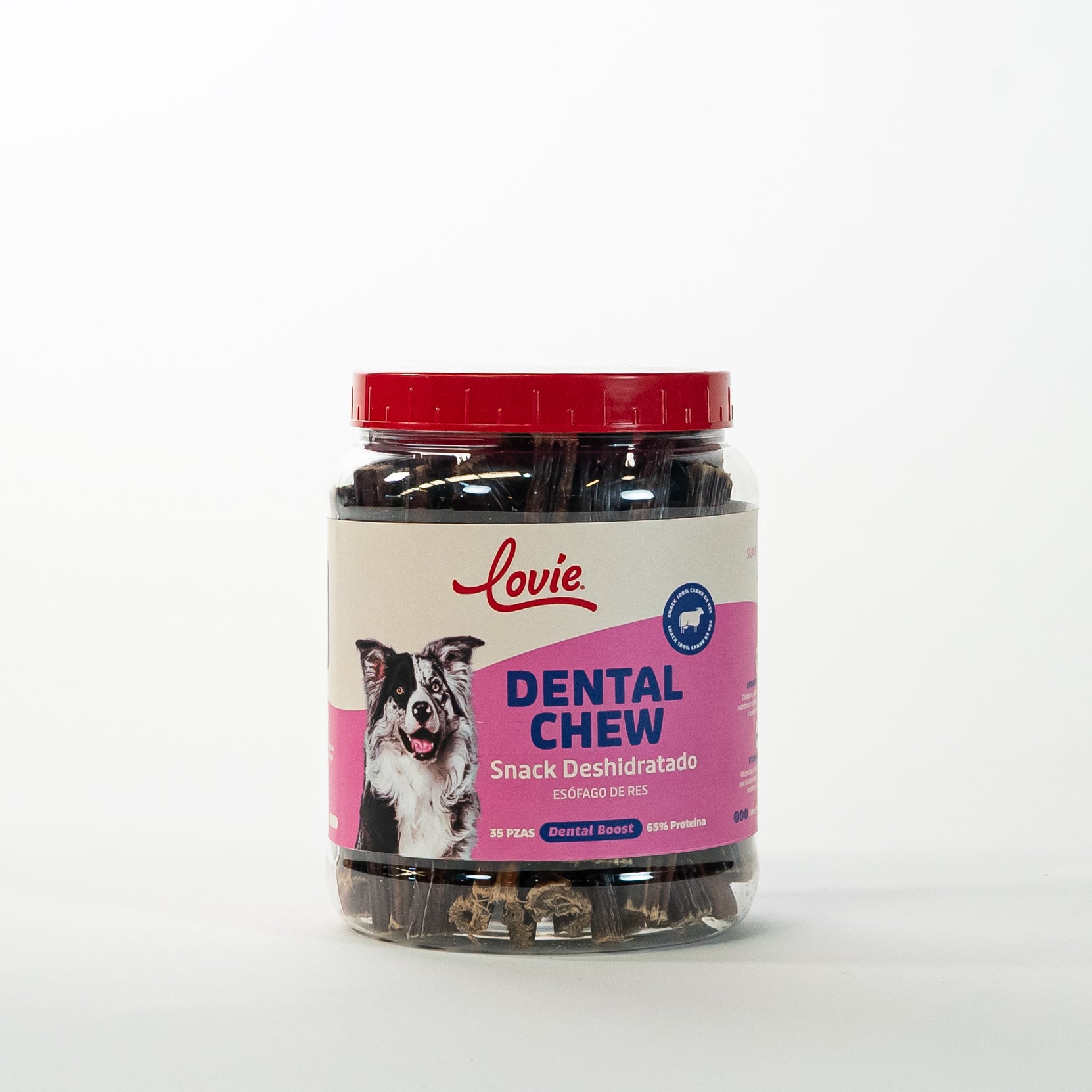 Los Dental Chews de Lovie Treats, elaborados con esófago de res deshidratado, son la solución ideal para la limpieza dental de tu perro. Estos snacks no solo contribuyen a la higiene bucal de tu mascota, sino que también son una fuente excelente de proteínas, fortaleciendo sus dientes y mandíbulas. Con una textura diseñada para remover el sarro y prevenir el mal aliento, cada mordida de estos snacks es un paso hacia una boca más sana y un perro más feliz.